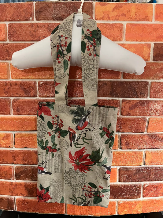 Christmas tote bag • robins • poinsettia • cranberries • sheet music • holidays • Xmas